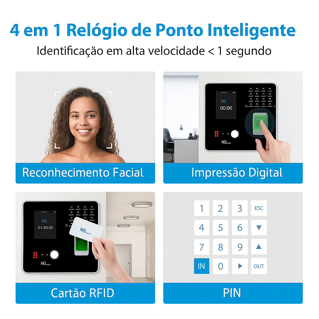 NGTeco Software de Picagem de Ponto, Face ID Impressão digital, RFID e Pino